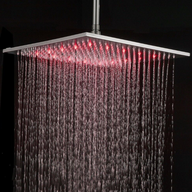 16inch LED Shower Head Wall/ceiling Mount Rain Square Top Sprayer Brushed Nickel