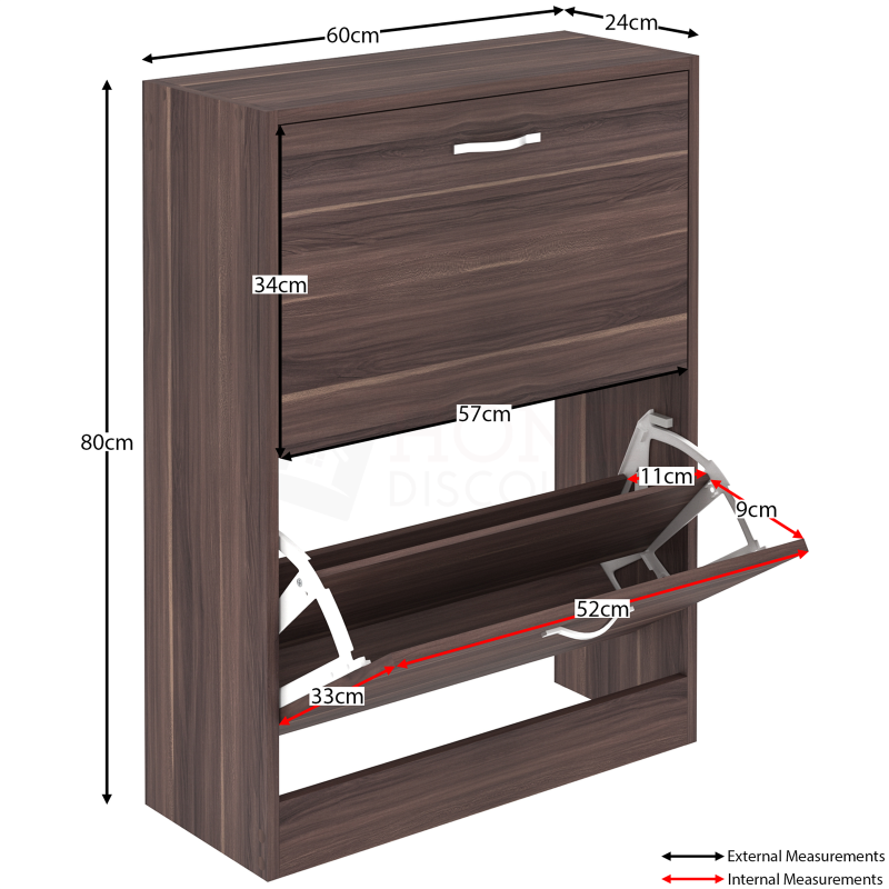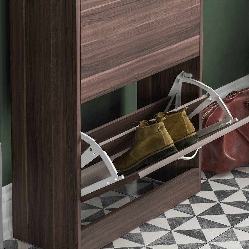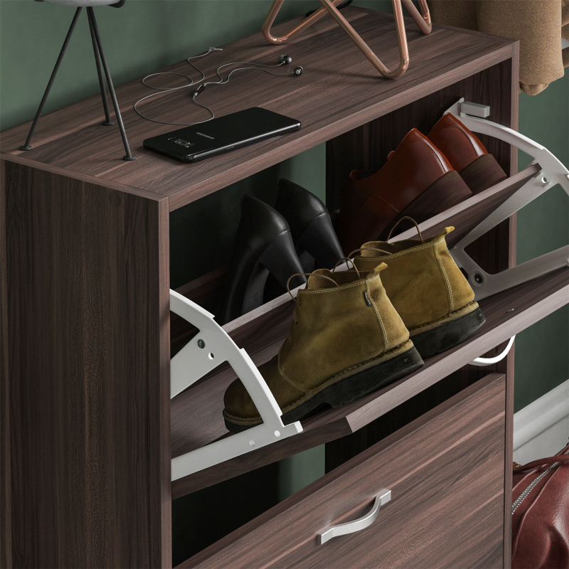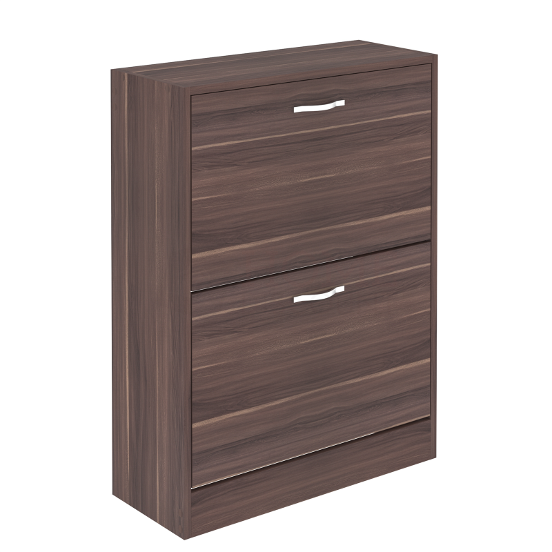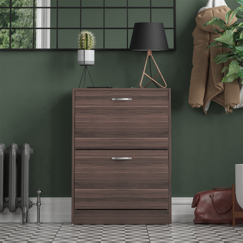 2 Drawer Shoe Cabinet Storage Cupboard Footwear Stand Rack Wooden Unit Walnut