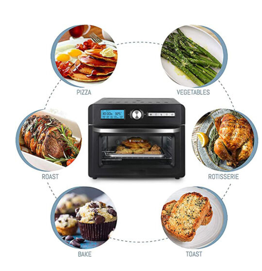 • 【Quartz Heat&Air Fry Technology】--Quartz Heat Technology delivers 40% more even heat for superior cooking results and preheats faster,and you can enjoy air fried meals with up to 85% less fat than traditionally fried foods. Air fry feature may require more cooking time than standalone air fryers.