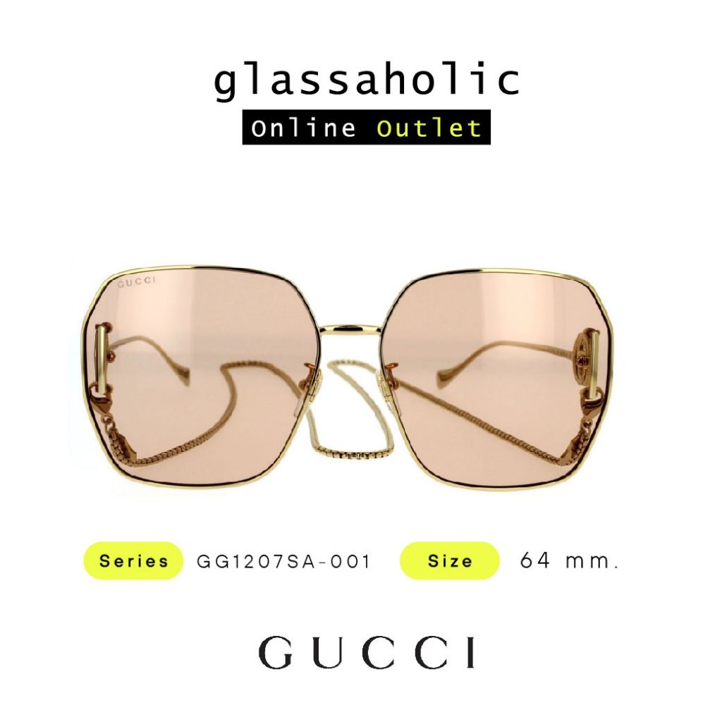 [รุ่นฮิตพิเศษ] แว่นกันแดด GUCCI รุ่น GG1207SA-001 ทรงเหลี่ยม ดีไซน์แฟชั่น รุ่นพิเศษ ขาทองมีโลโ