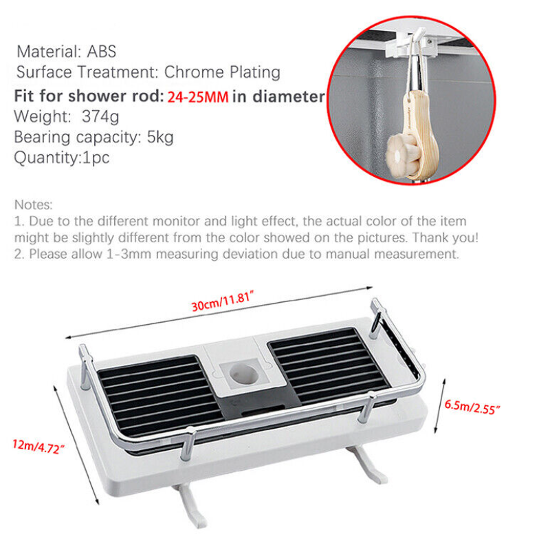 *Easy installation: This shower organizer is easy to be clamped on a shower pole of 24~25mm diameter, no more tools and drilling.