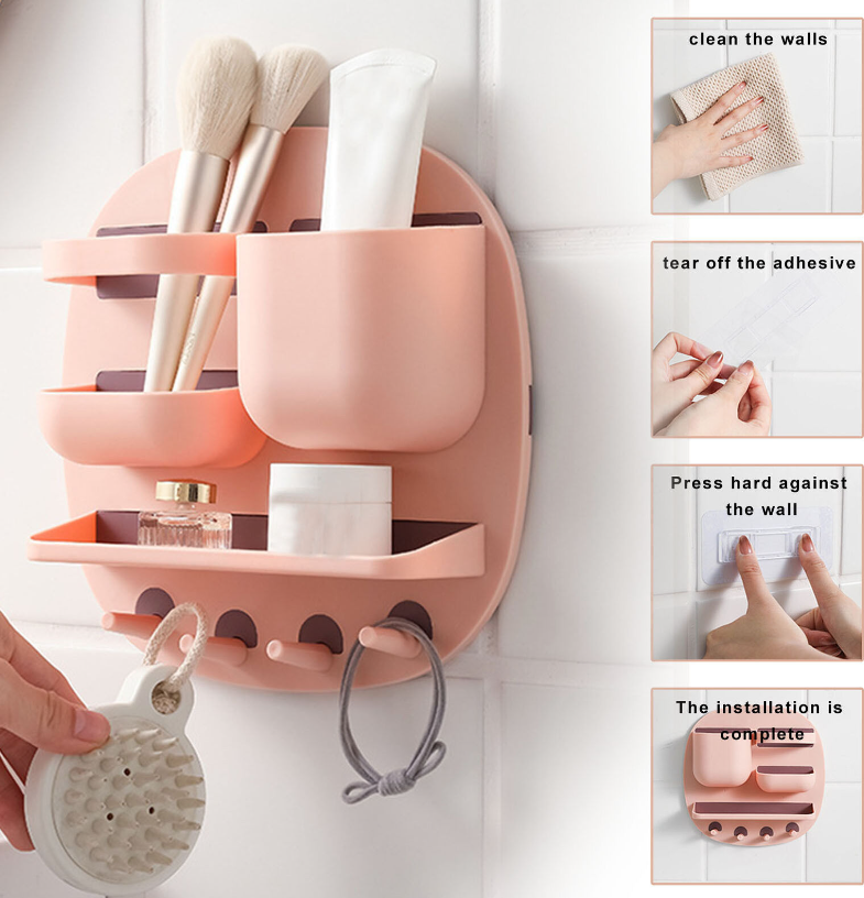 Specification:Name: Multifunctional Floating ShelfMaterial: PPColor: pinkSize: 22x22x6cm/8.66*8.66*2.36inchWeight: 201g