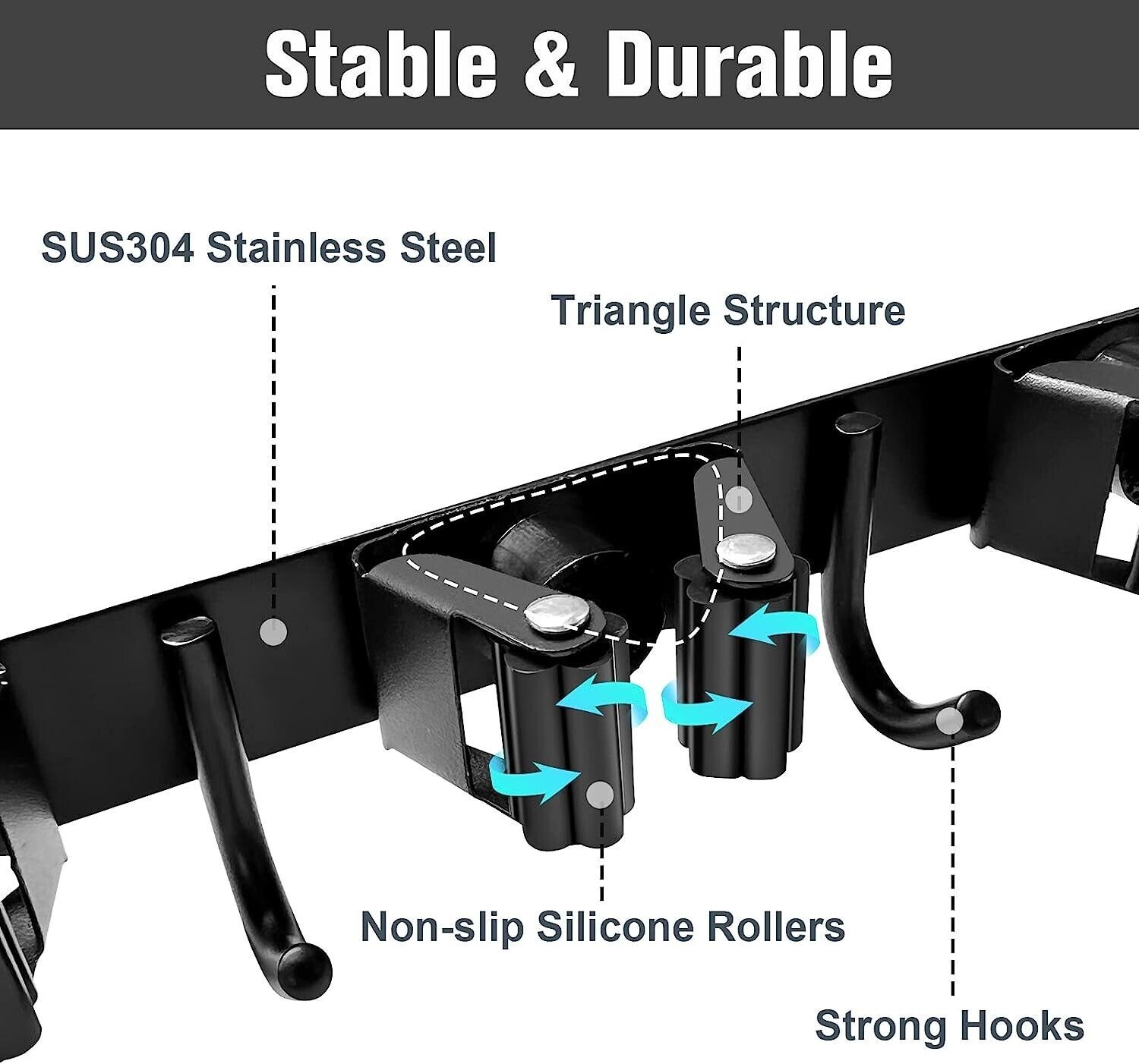 Broom Holder Wall Mount 4 Racks and 5 Hooks Broom Organizer Stora
