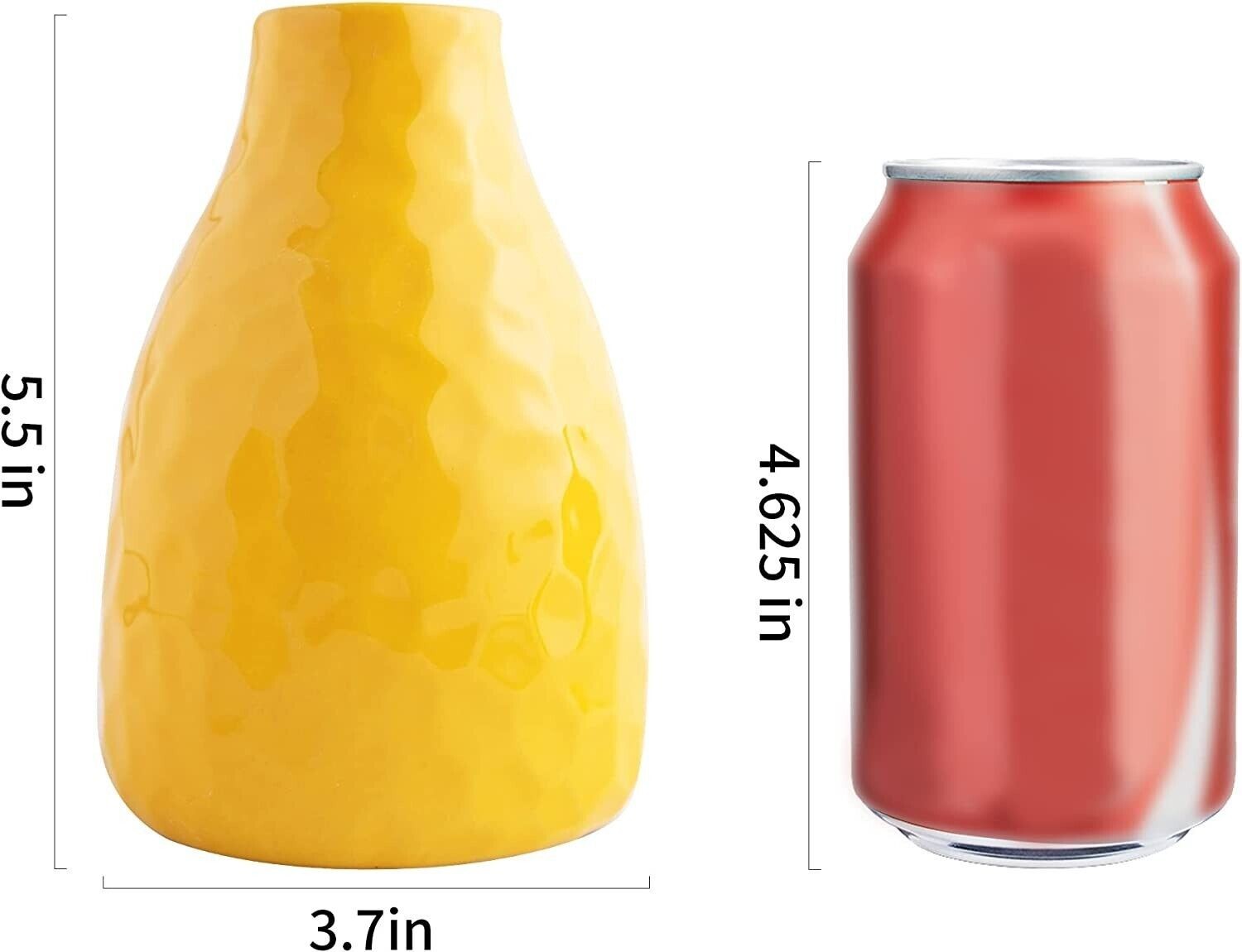 Home Living Room Decor Set of 3 Small Yellow Stoneware Ceramic Flowers Vase
