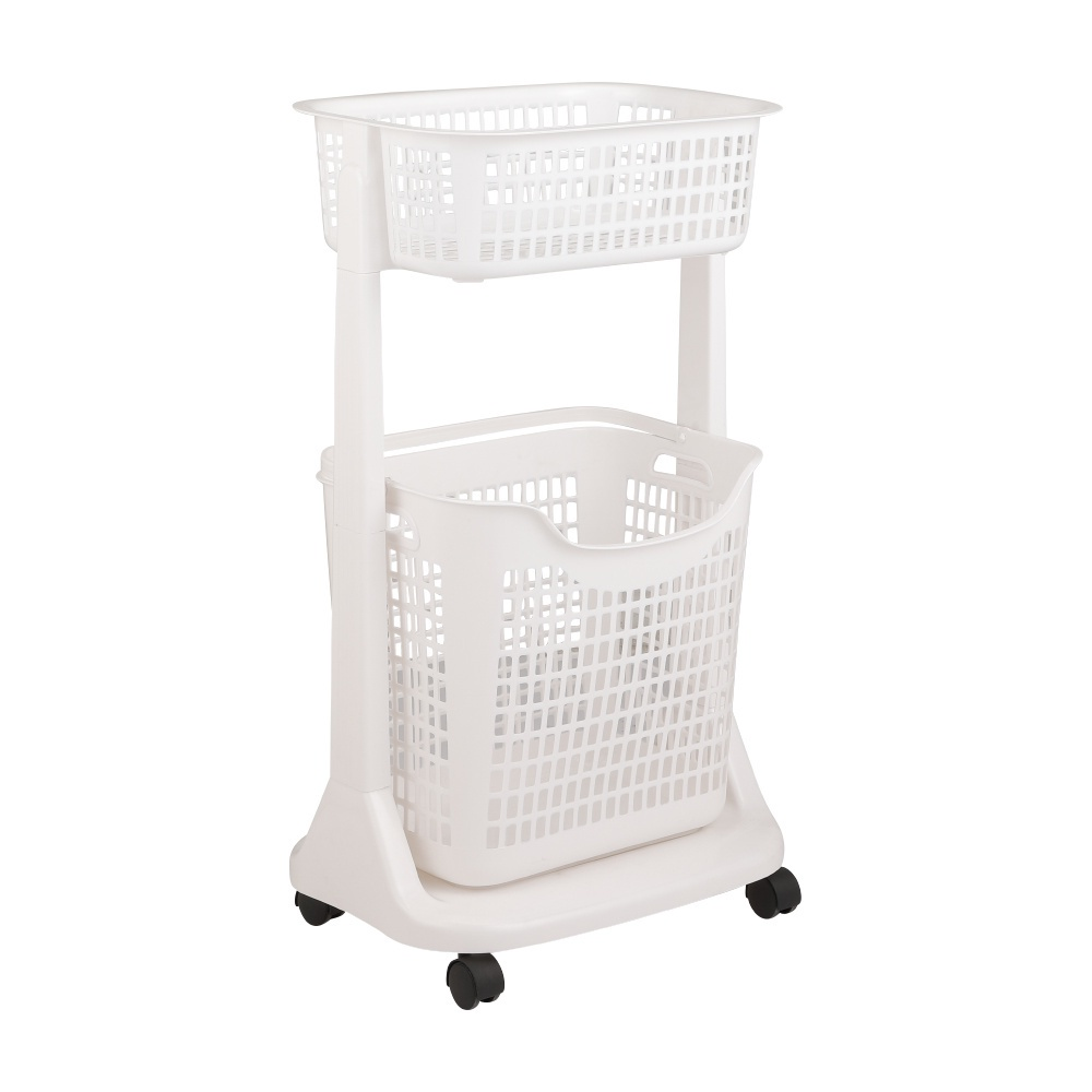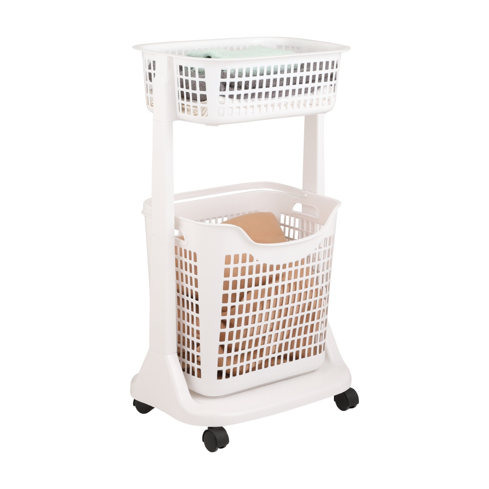 INDEX LIVING MALL ตะกร้าผ้า 2 ชั้นมีล้อ รุ่นโนริมะ - สีขาว