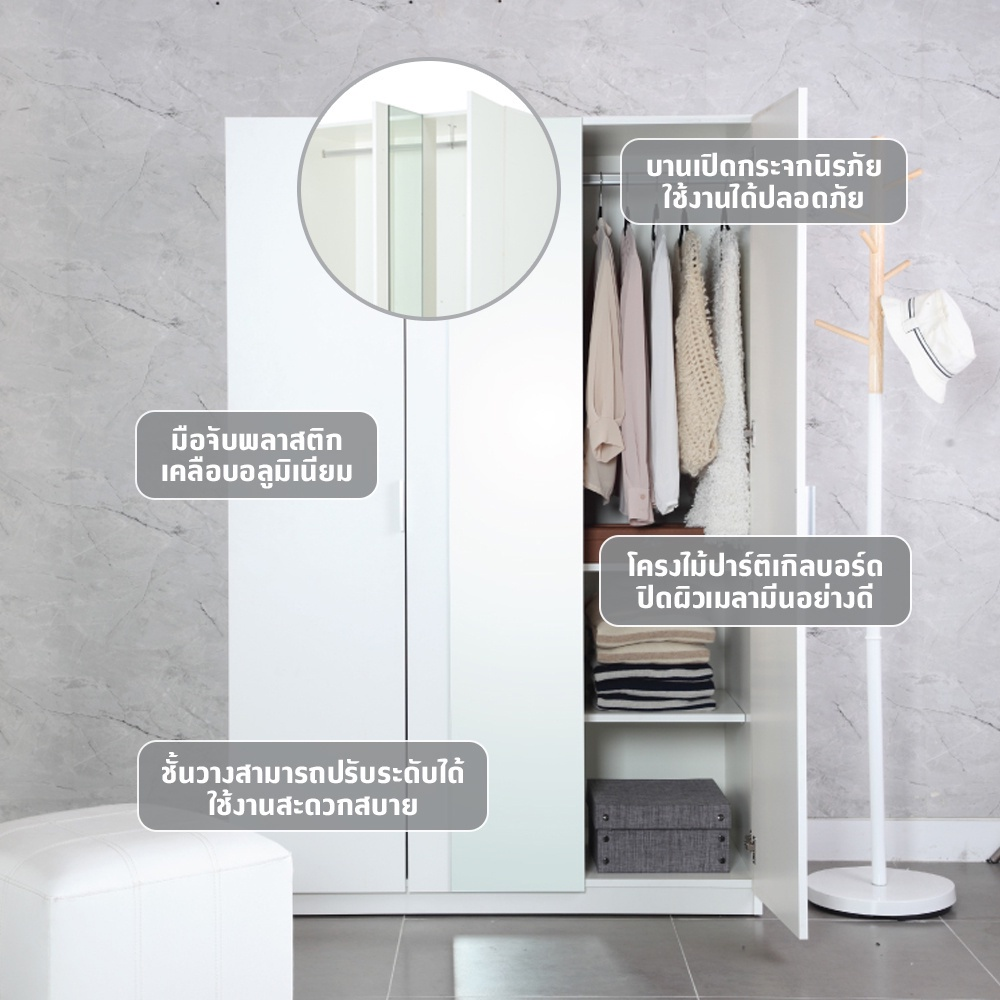 INDEX LIVING MALL ตู้เสื้อผ้าไม้ 3 บานประตู รุ่น วิวิด - สีขาว