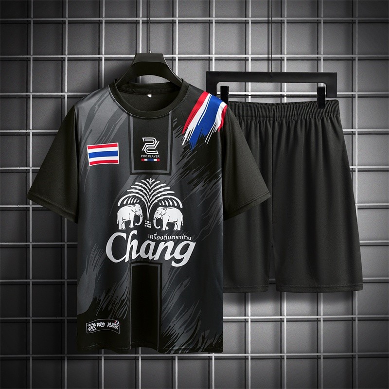 ?สินค้าพร้อมส่ง?เสื้อ+กางเกง ชุดเซ็ทกีฬา ทผู้ชาย ชุดเชตผู้ชาย ชุดกีฬา ชุดเซ็ทกางเกง พร้อมกางเกงสีดำพิมพ์ลาย + ธงLogoช้าง