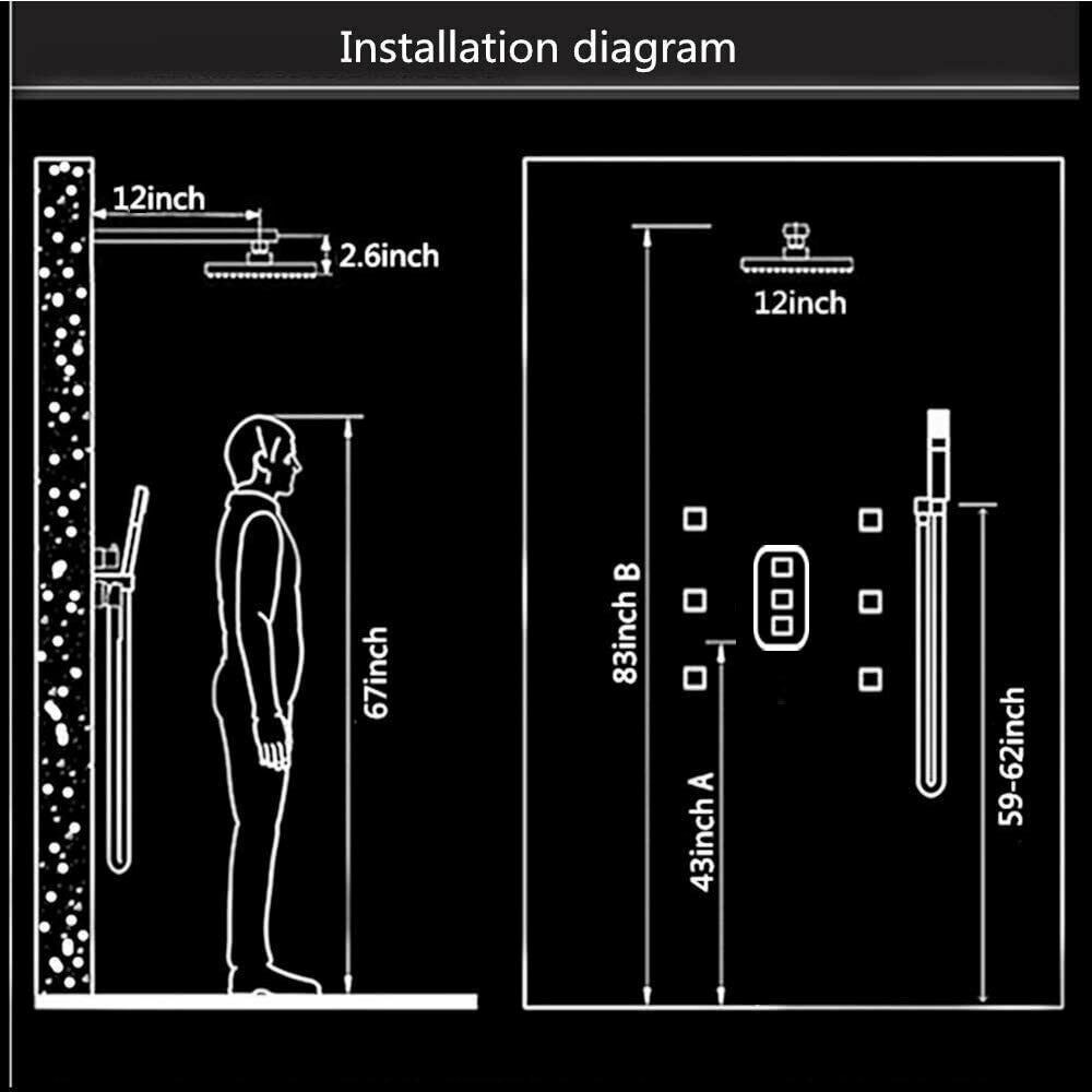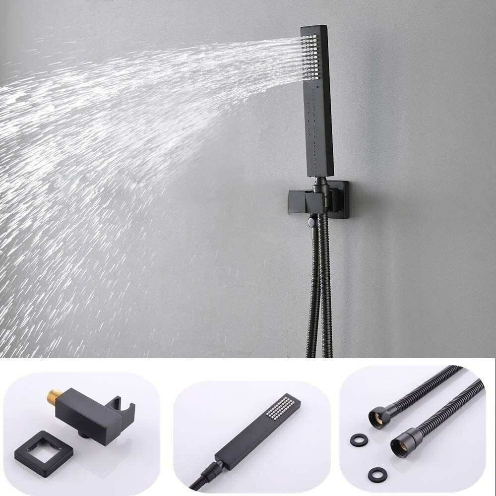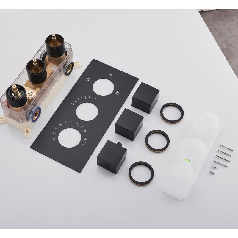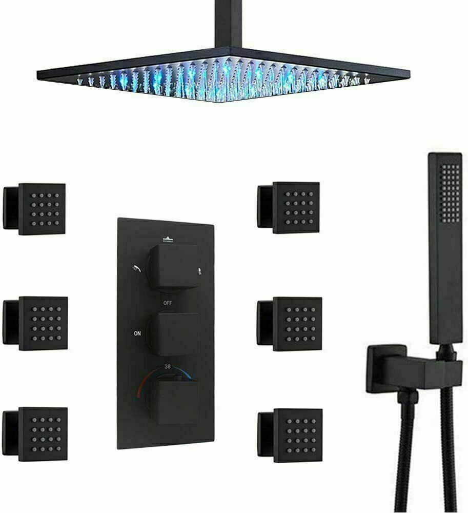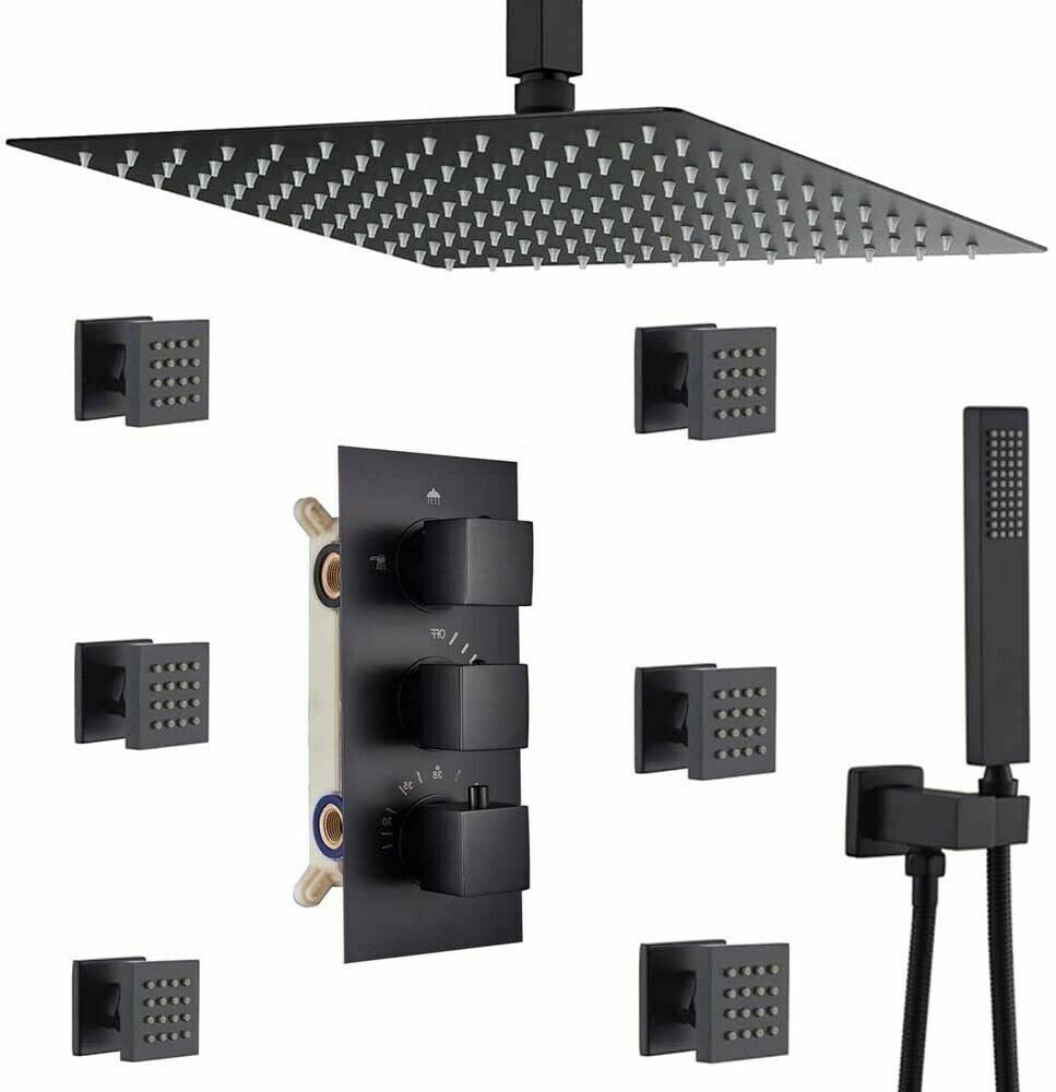 Luxury Black Thermostatic Rainfall Shower Head Combo Set Massage System Sprayer