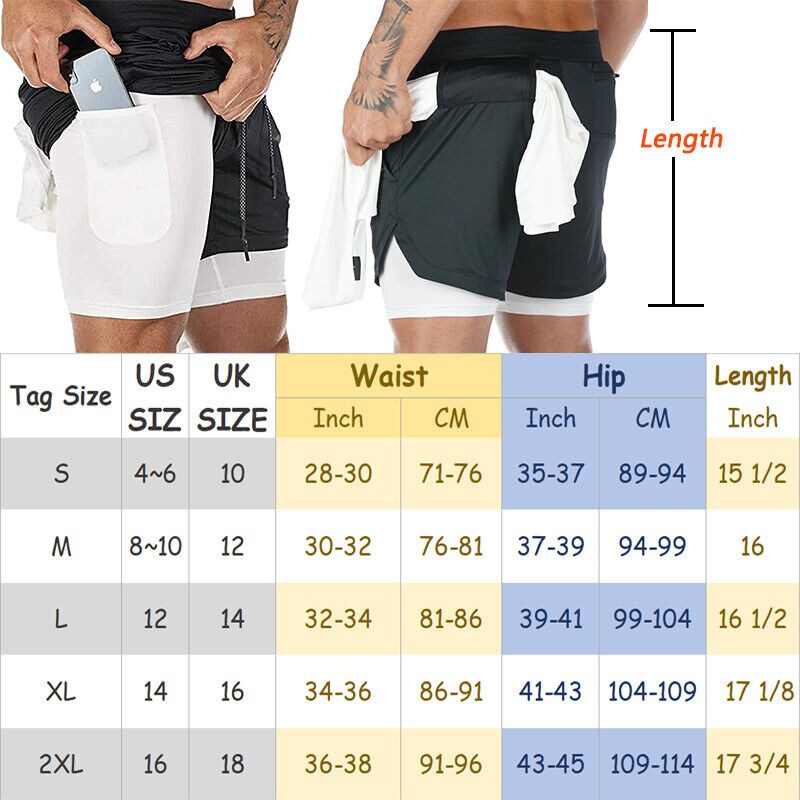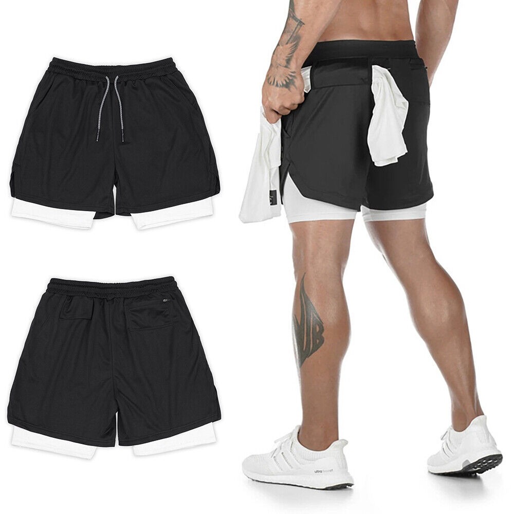 Men 2 in 1 Gym Running Shorts 7 inch Athleti Pants Quick-Dry Shorts with Pockets