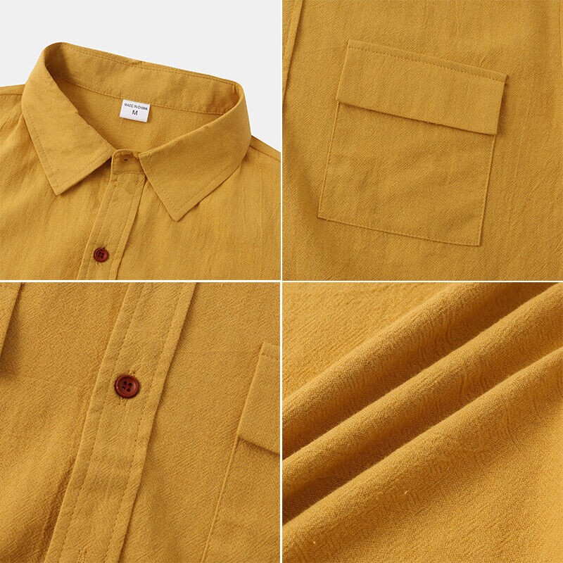 Men's Casual Button Down Shirts Short Sleeve Beach Linen Cotton Summer Shirt ❀