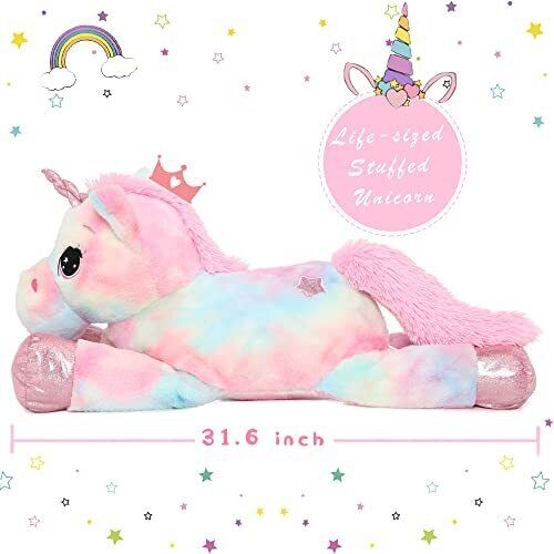 Muiteiur Large Unicorn Stuffed Animal Soft Plush Toy Large Pink