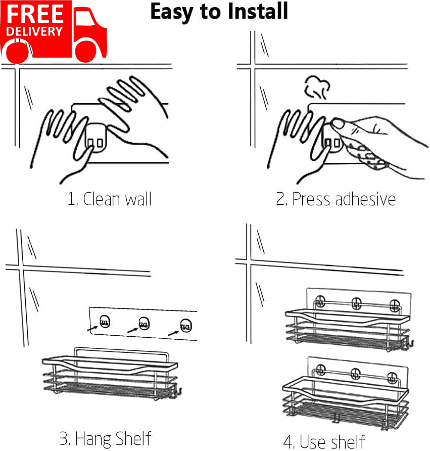 3 x Adhesives, 2 x Shower Caddies, 1 x Manual