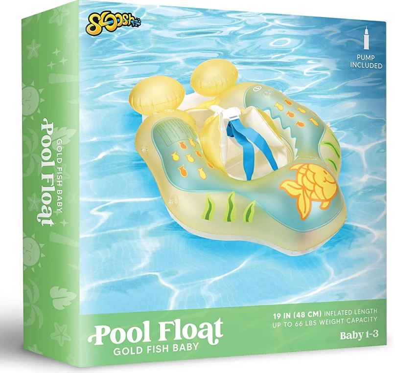 Sloosh Goldfish Pattern Inflatable Baby Swimming Float Detachable Sun Canopy L